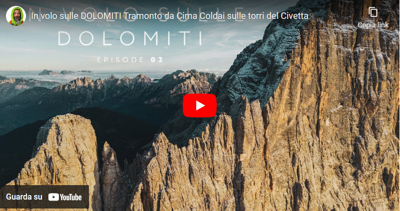 Tante volte sono salito su questa montagna, di conseguenza conosco abbastanza bene la sua geografia. Tuttavia quella volta in cui io e Giovanni abbiamo raggiunto la Cima Coldai al tramonto, ed abbiamo alzato il drone, mi sono stupito, affascinato ed emozionato nuovamente. Quella sera ho deciso di mandare in "missione" il drone, dirigendolo verso le torri, approfittandone della differenza di quota non troppo elevata tra noi e le loro sommità. Quando dopo un paio di minuti il drone le ha raggiunte è stato interessantissimo! Vista da quell'angolazione impossibile da ottenere se non volando, l'intera Nord-Ovest è diventata ancora più imponente e la sua cresta, contrastata dal freddo blu proveniente dall'altro versante ha creato un gioco di colori estremamente piacevole.