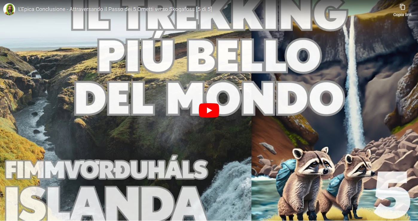 Fimmvordurhalls trail. Partendo da Þórsmörk ci dirigiamo verso l'attacco del sentiero chiamato Fimmvordurhalls (Passo dei 5 ometti). Il sentiero percorre circa 30km con una breve salita ed una infinita discesa verso la cascata Skogafoss. ⛲