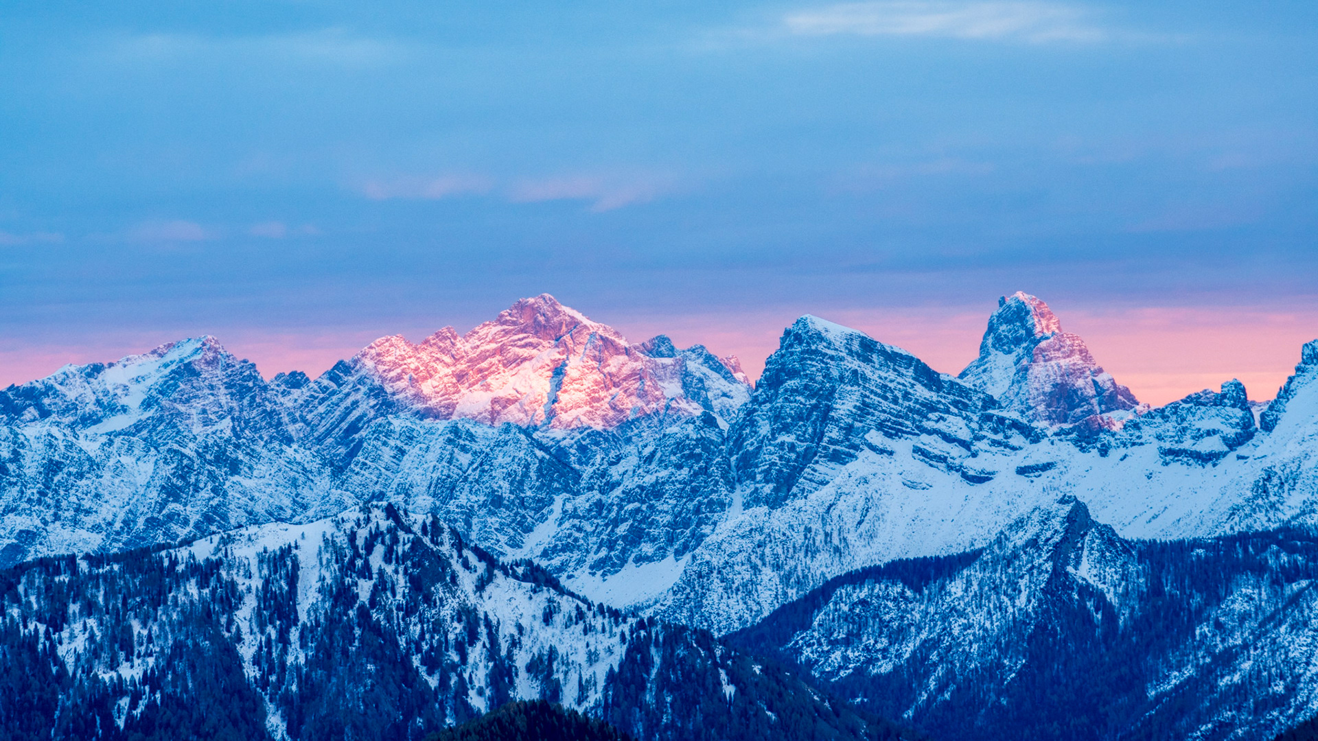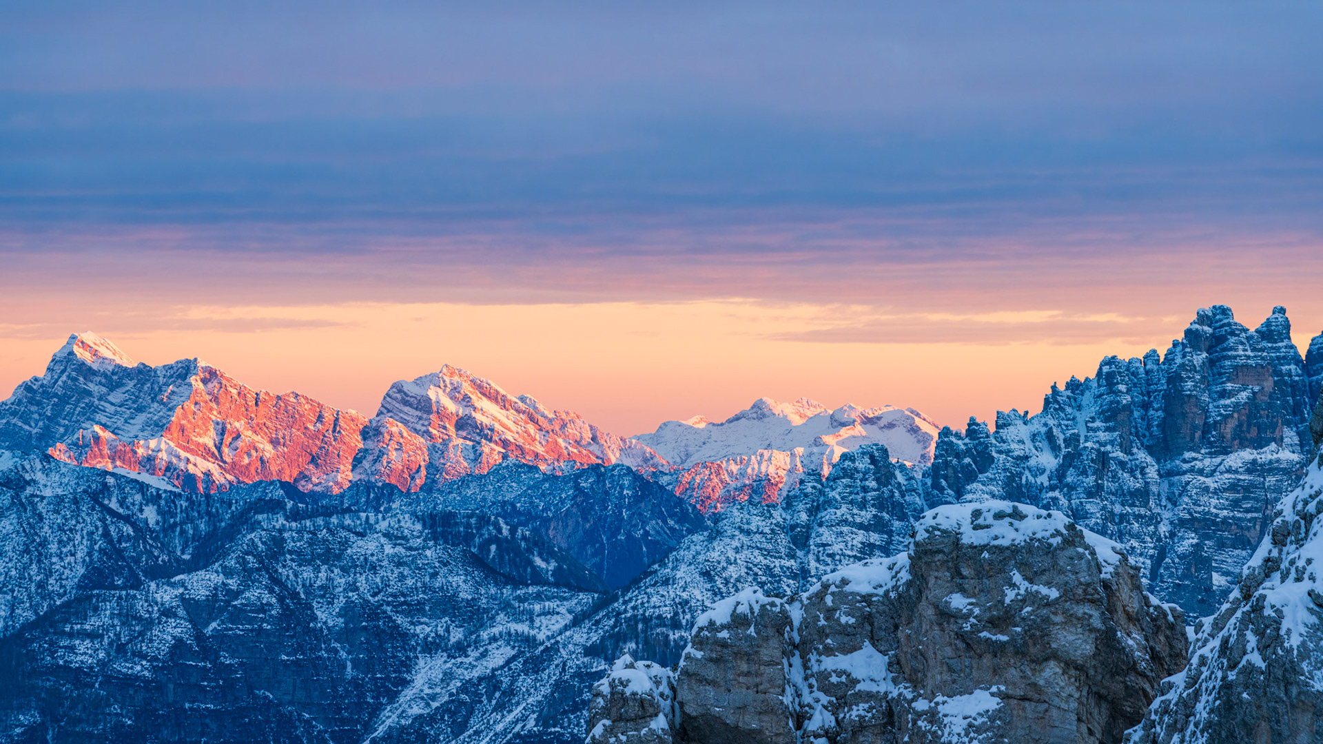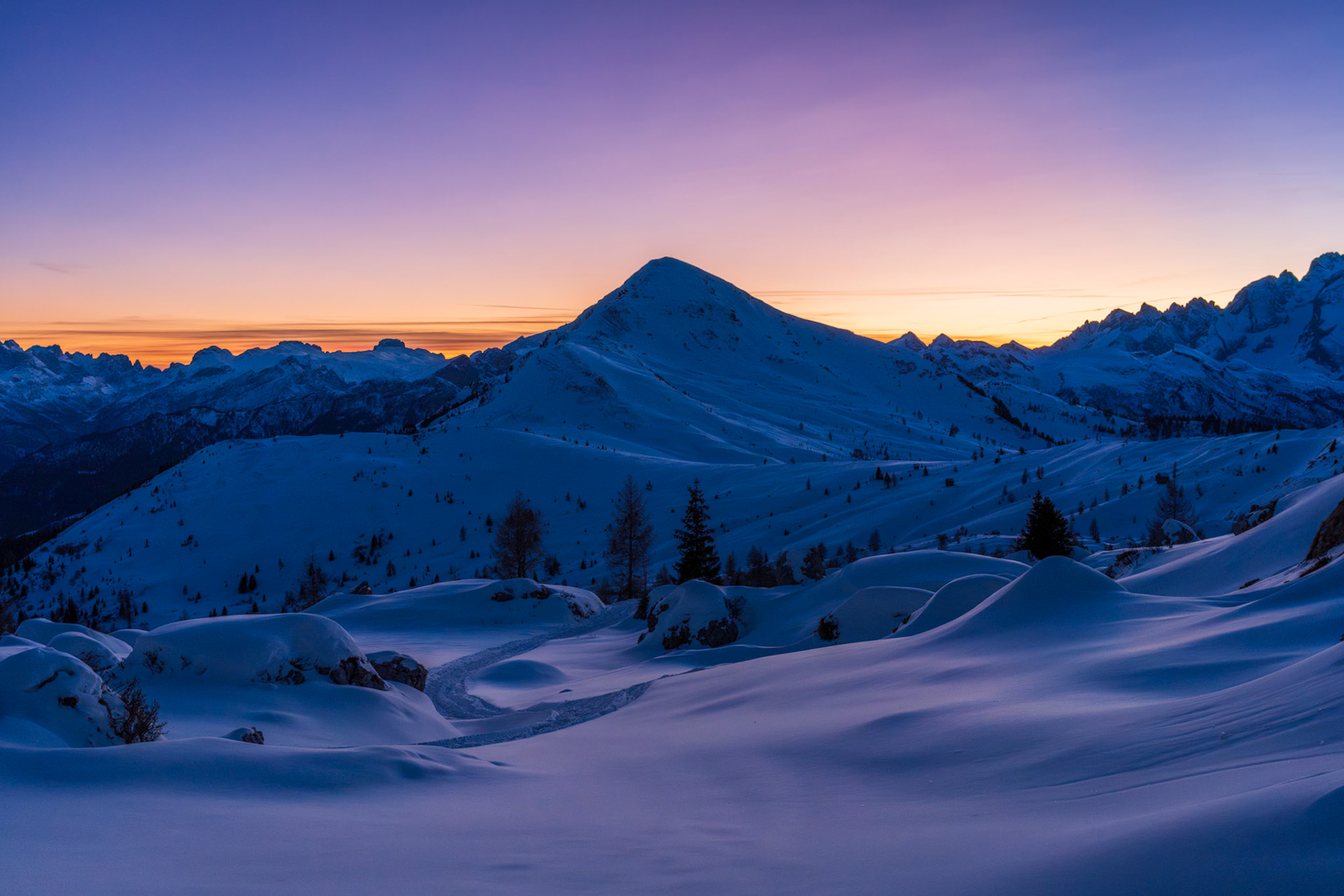 A kind of aurora, but it is only a blue hour, Dolomites, Italy