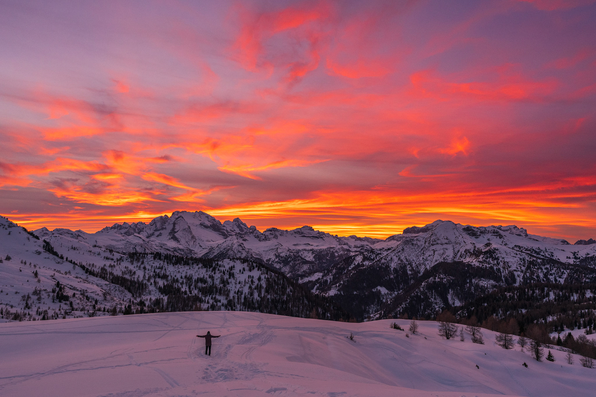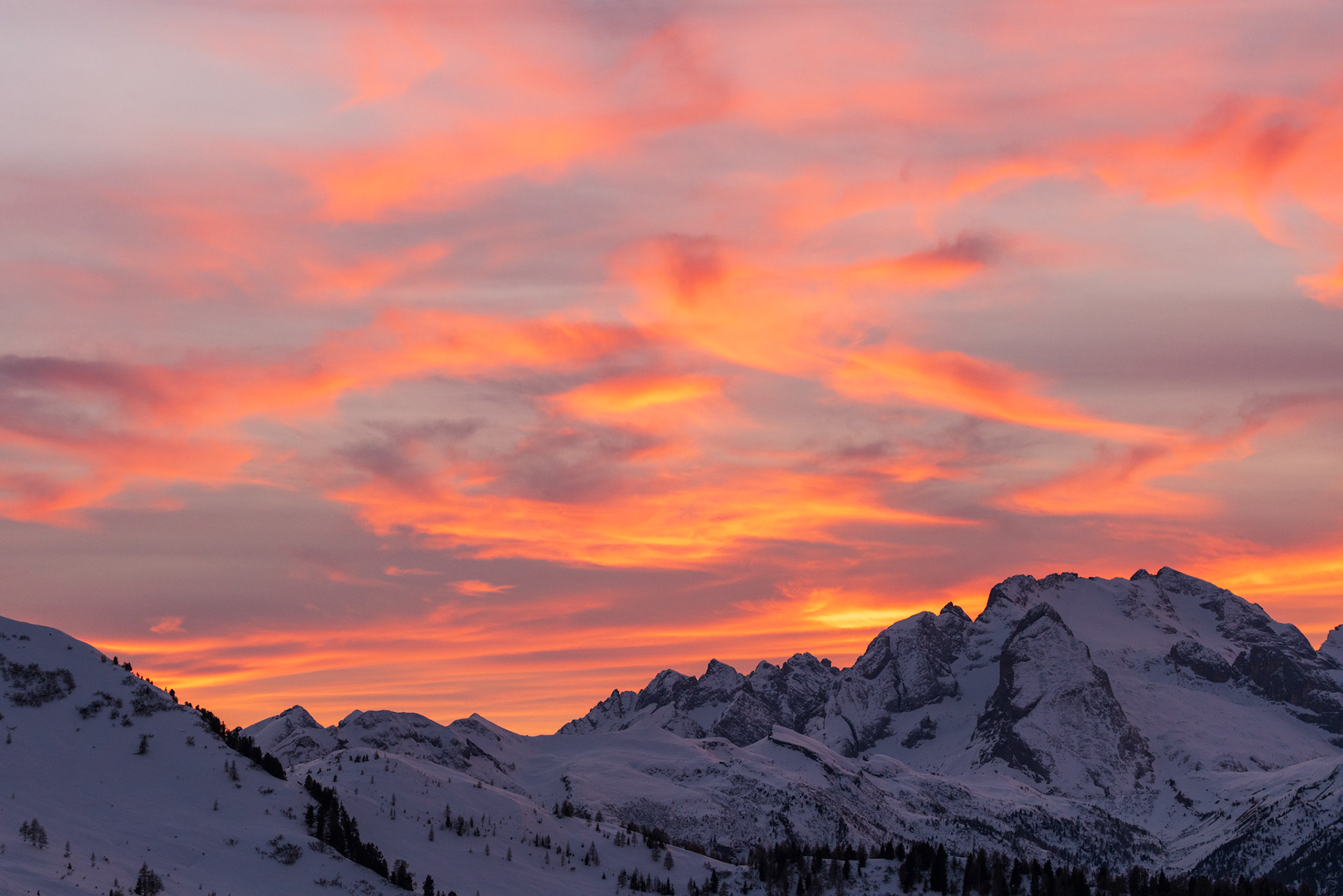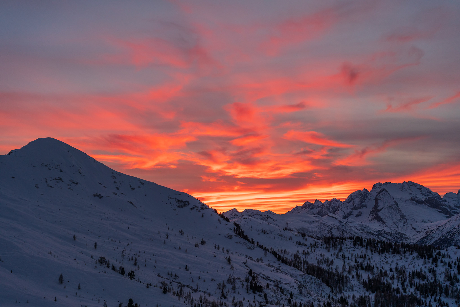 Taken from Passo Giau, with fiery red colours mixed with a dark midnight blue
